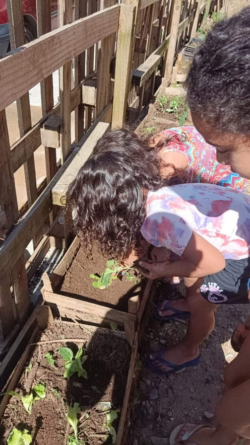 - Realizar atividades educativas com as crianças do bairro, mostrando a importância da horta comunitária e como cultivar hortaliças e verduras;